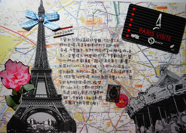 所以將巴黎鐵塔和旋轉木馬印成黑白照片,順便搭配右上角巴黎地鐵專用的票夾,