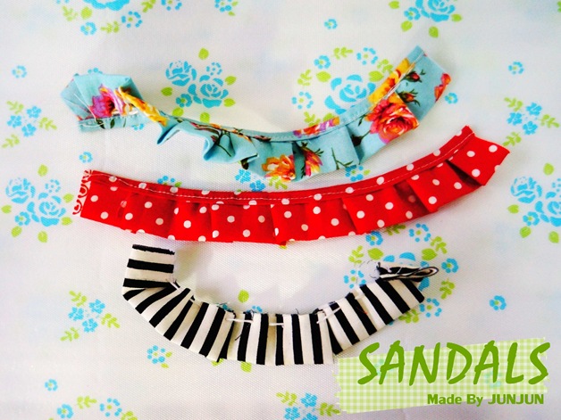 接著將A料邊抓皺摺,邊用手縫針虛縫固定