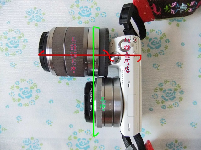 長要以相機的寬再加上多放一顆鏡頭的寬為主