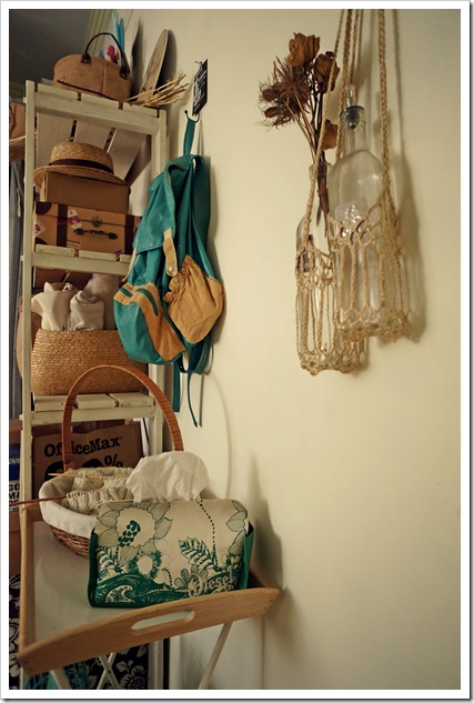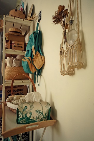 與另一個鄉村風的衣架隨意的放在藤籃內