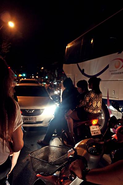 司機載著我們在塞爆的車陣中,穿梭並逆向超車,
