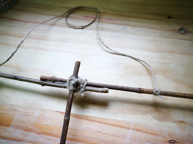 運用上述兩個繩結法,綁成一個日字形的窗框